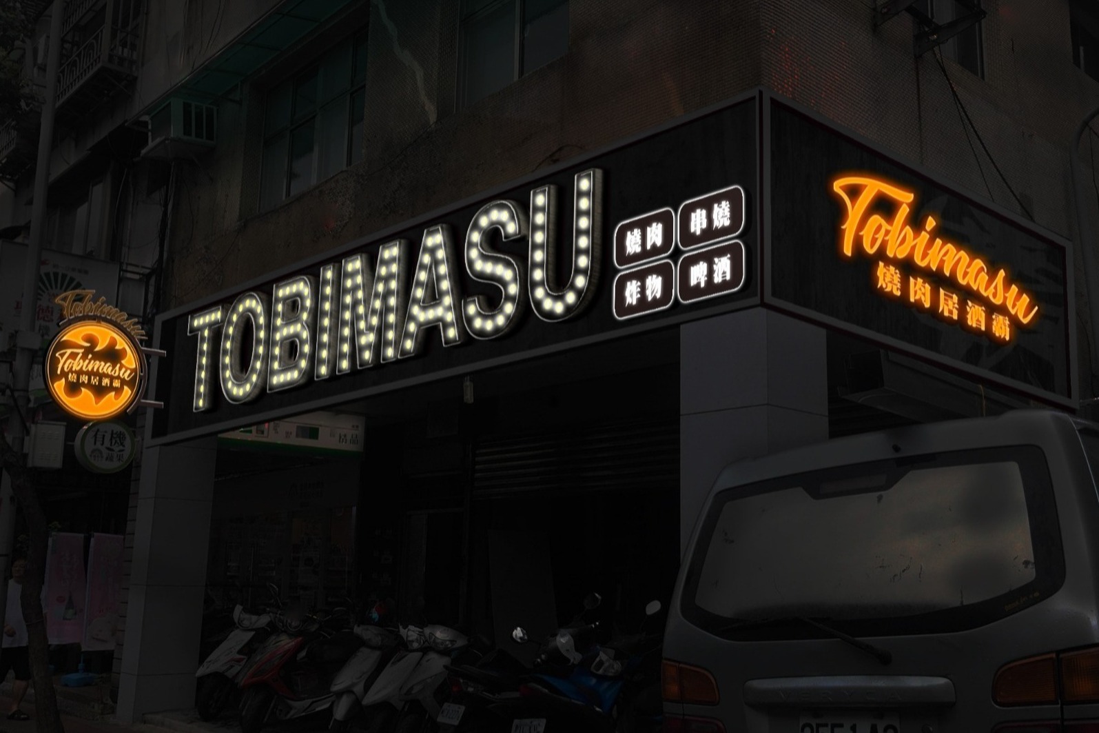 立體塑鋁燈箱+玻璃霓虹燈