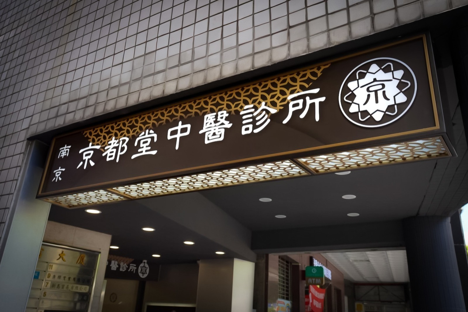 → 金屬雷射簍空燈箱嵌水晶發光字,堆疊層次。