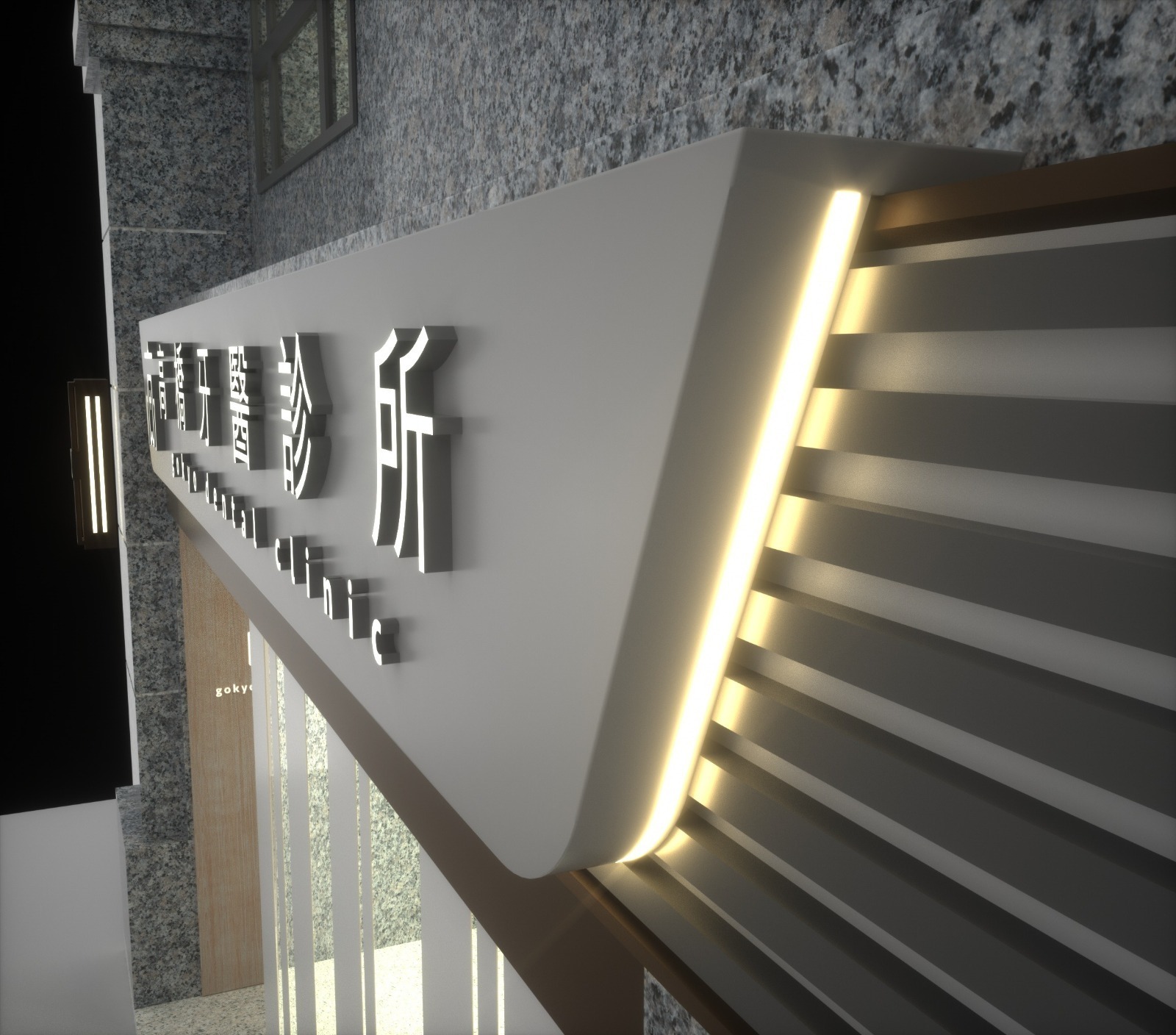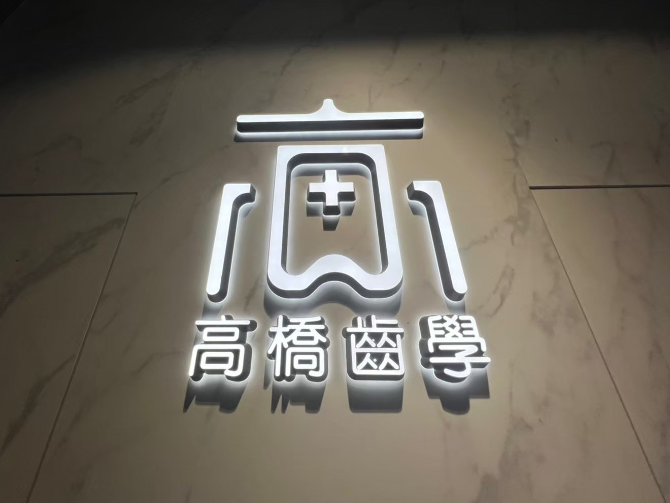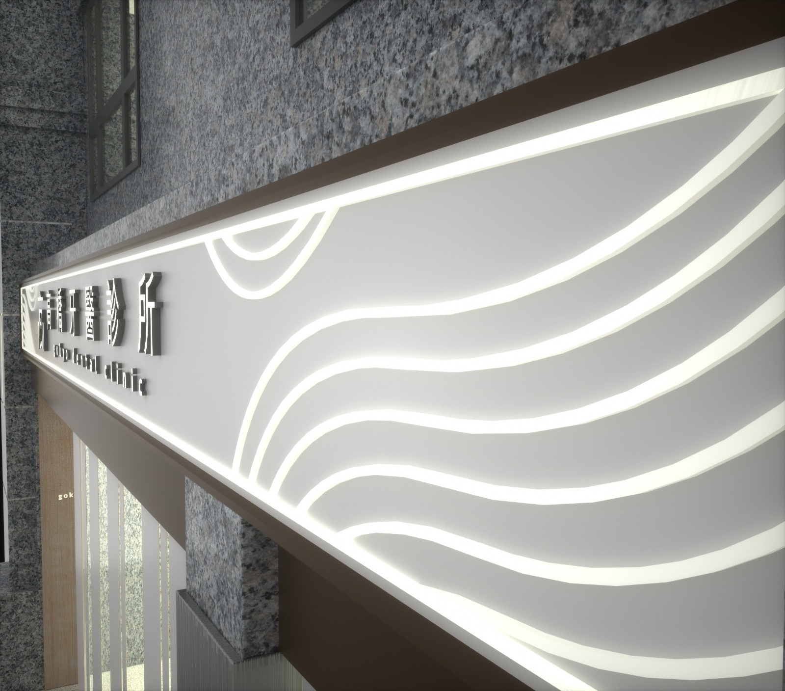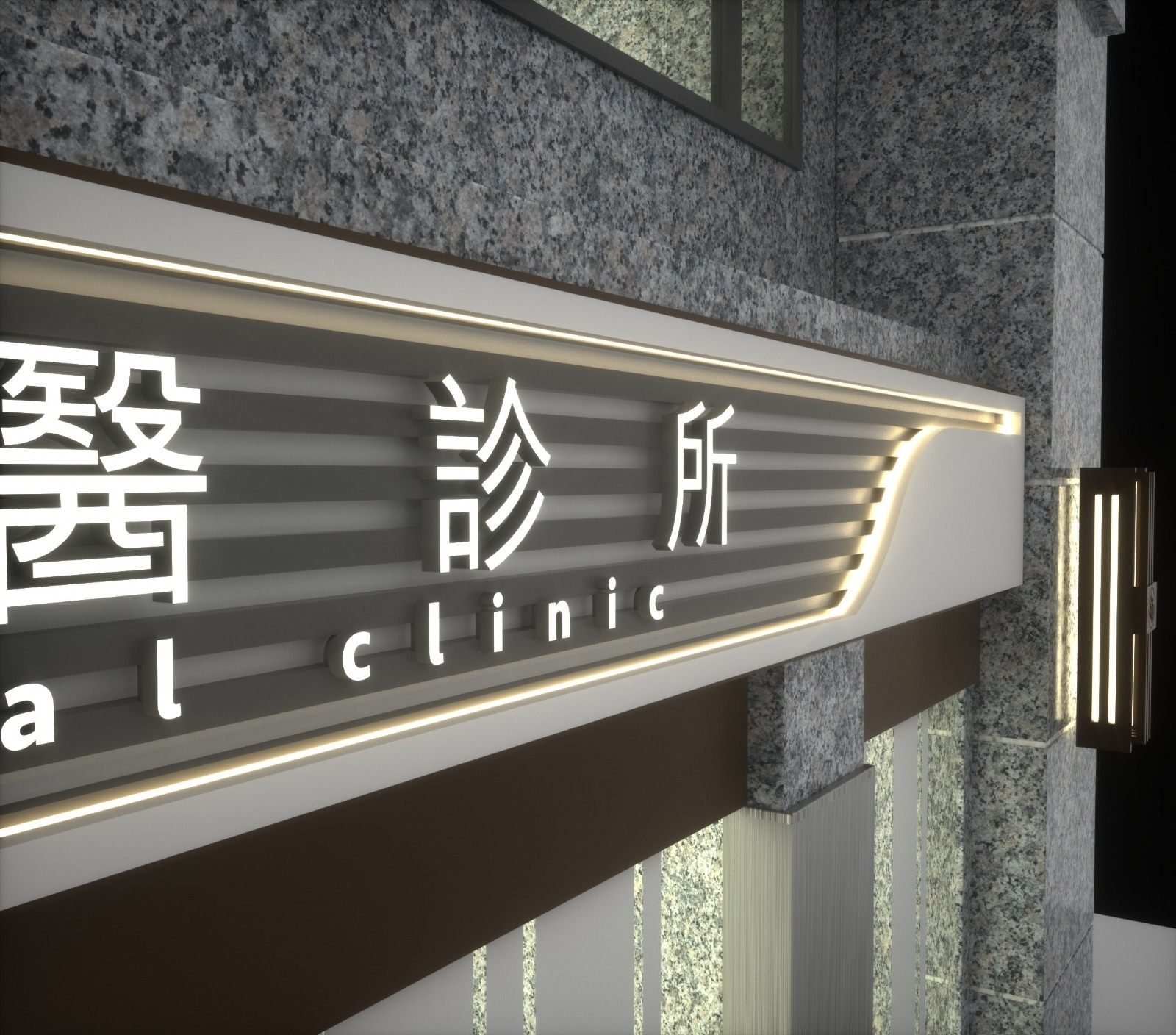 整體外觀採用立體正背光字,提升夜間辨識度, 燈光從字體邊緣柔和散出,營造潔淨溫潤的氛圍, 搭配淺色石紋牆面,使空間感更為雅致沉穩。以極簡風格勾勒出專業、親切又值得信賴的品牌形象。