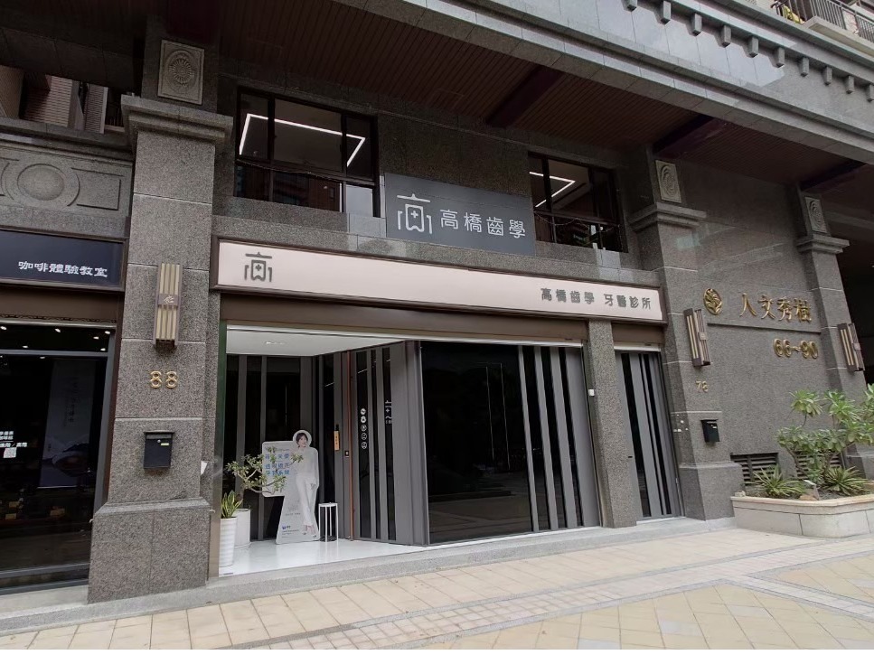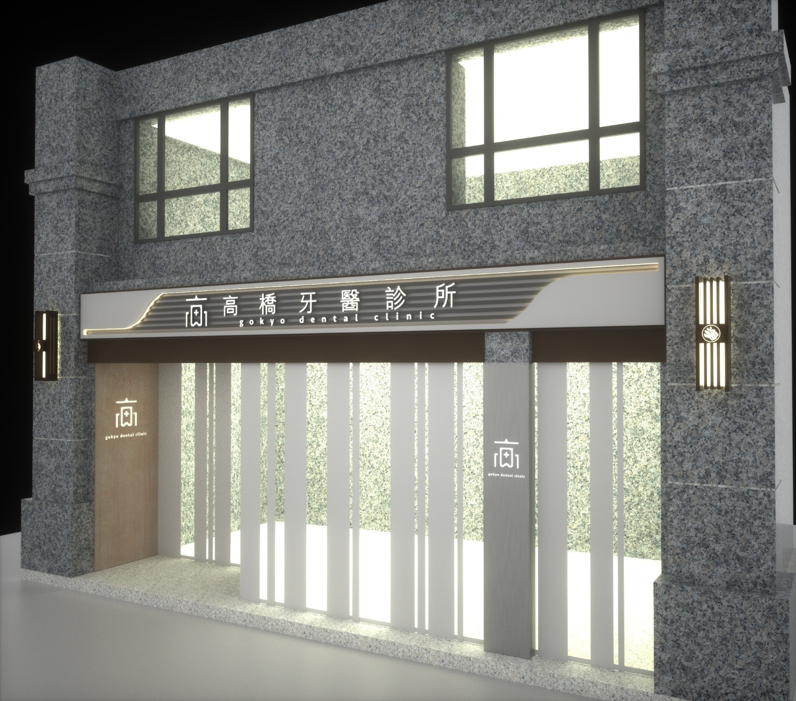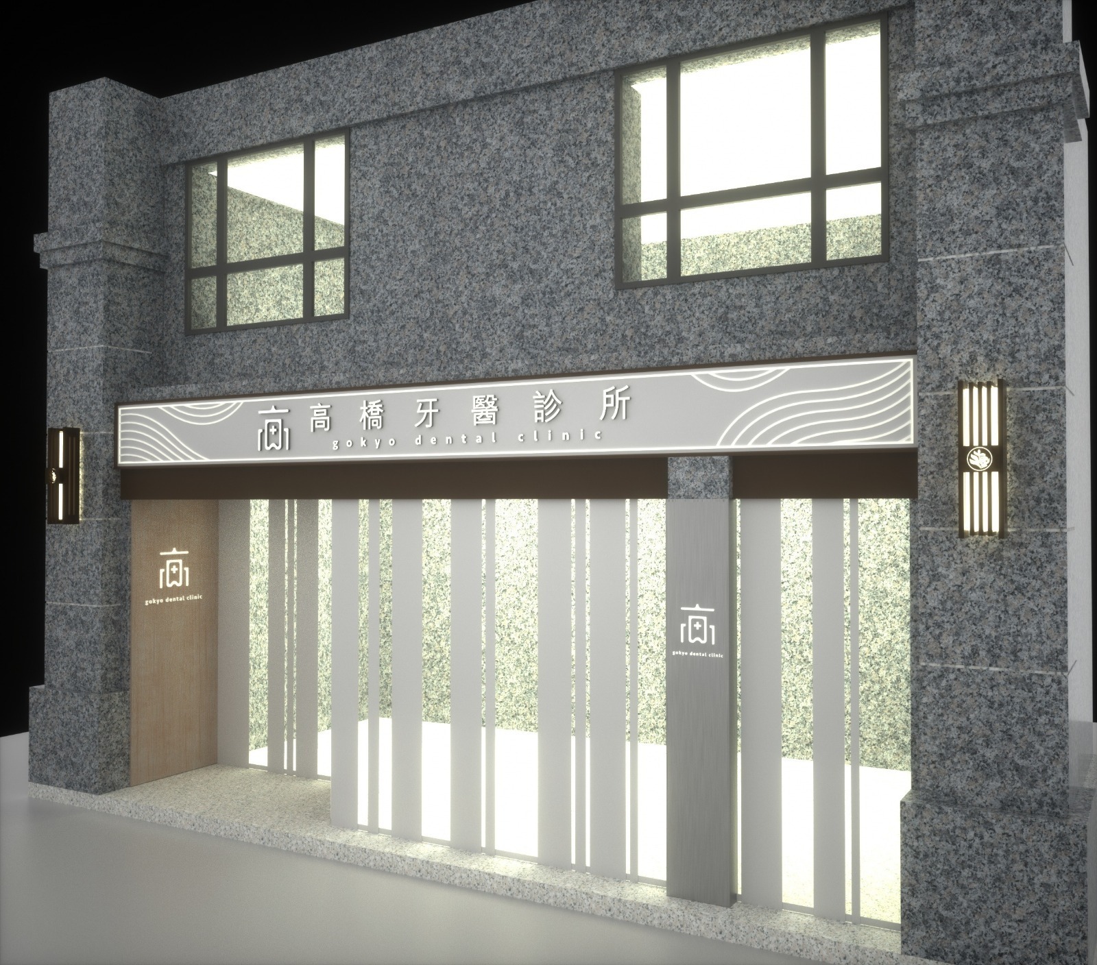 以簡潔的金屬構築現代醫療新形象,,中央導光區域猶如一道入口之光,迎接每位前來的病患。 精準、理性與專業,是高橋牙醫診所品牌信賴感的最佳體現。