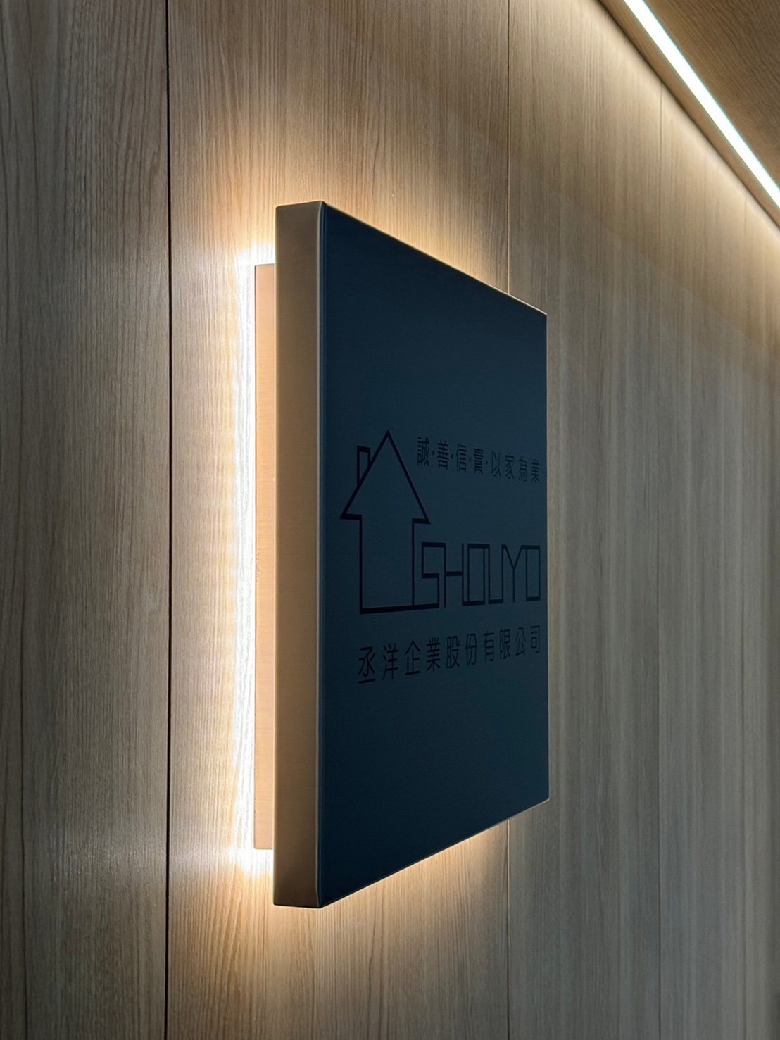 利用暈光投射於木質牆面,很好的展現出溫馨的品牌調性。